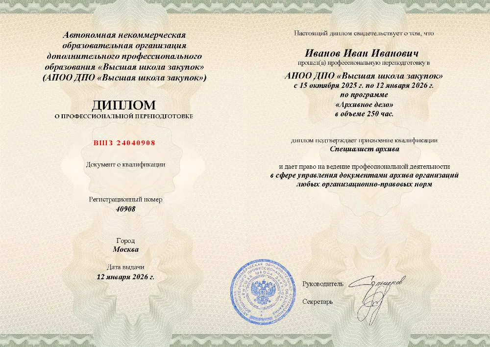 Программа профессиональной переподготовки (250 часов) для специалистов по архивному делу. Освойте правовые основы управления документами, технологии делопроизводства, оцифровку и организацию работы электронного архива с экспертизой ценности документов. Онлайн-обучение в в Челябинске с итоговой аттестацией.