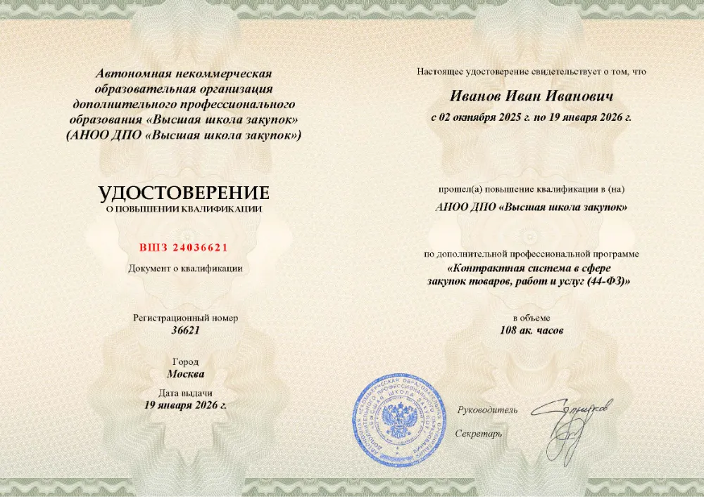 Контрактный управляющий в сфере закупок товаров, работ, услуг для обеспечения государственных и муниципальных нужд (44-ФЗ)
